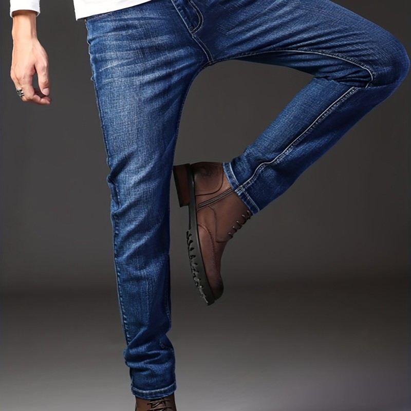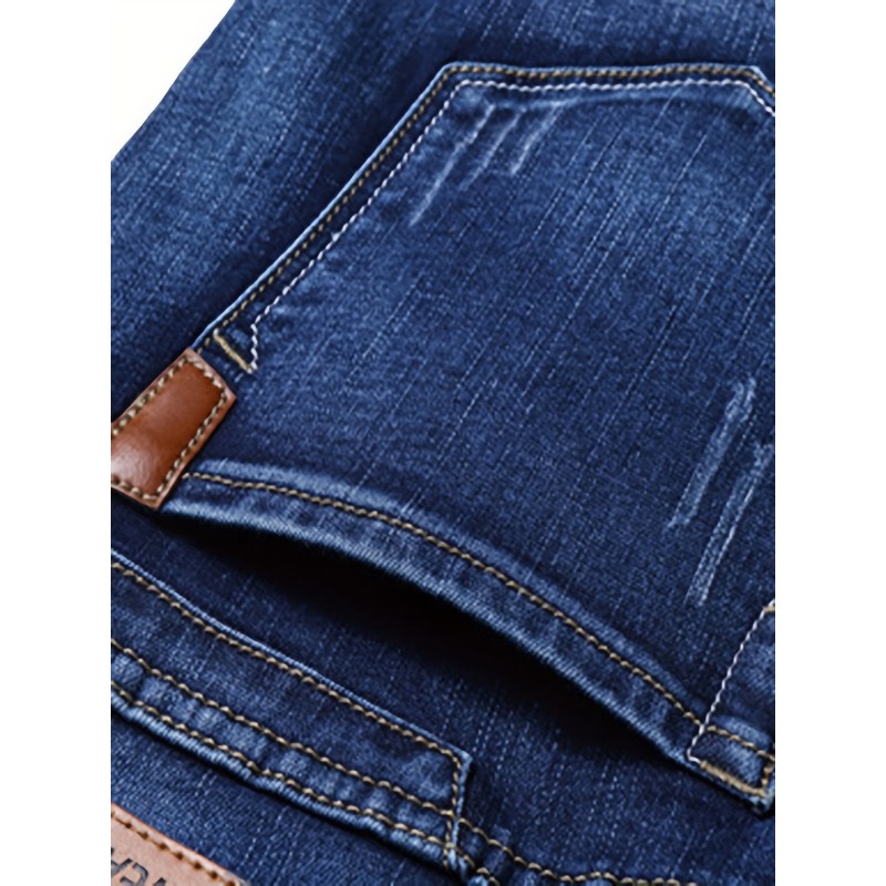 Classic Design Semi-formal Jeans, Men's Casual Stretch Denim Pants For All Seasons Business