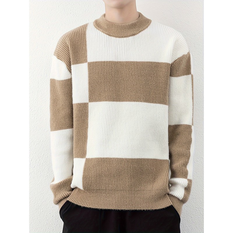 Cool Knitted Sweater For Men, Men's Casual Retro Striped Pullover Knit Sweater Streetwear For Winter Fall, As Gifts