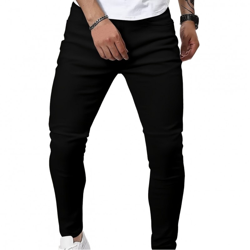 Men's Casual Skinny Medium Stretch Jeans, Chic Street Style Denim Pants