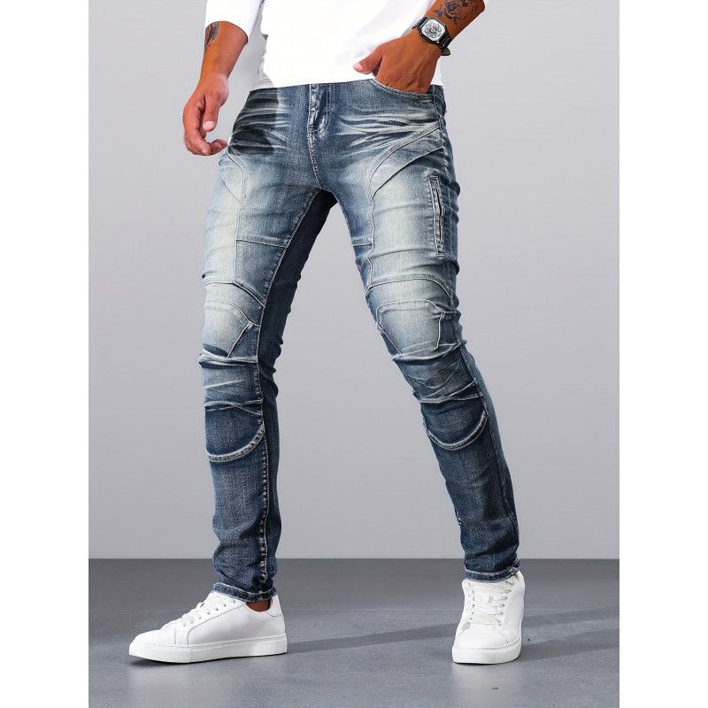 Men's Casual Vintage Style Denim Pants, Street Style Skinny Biker Jeans