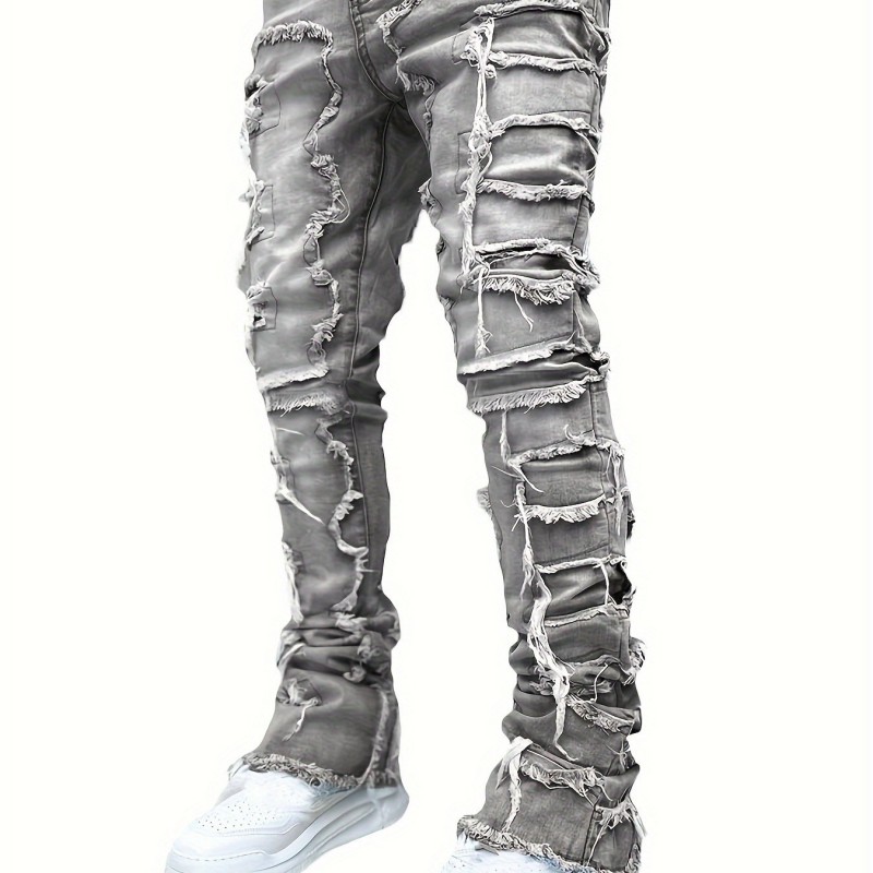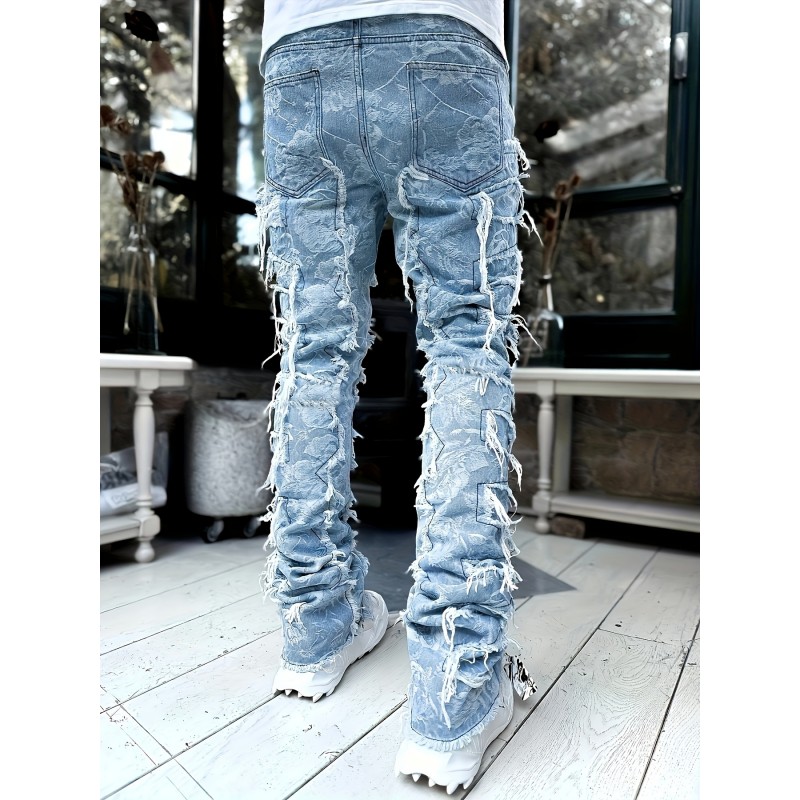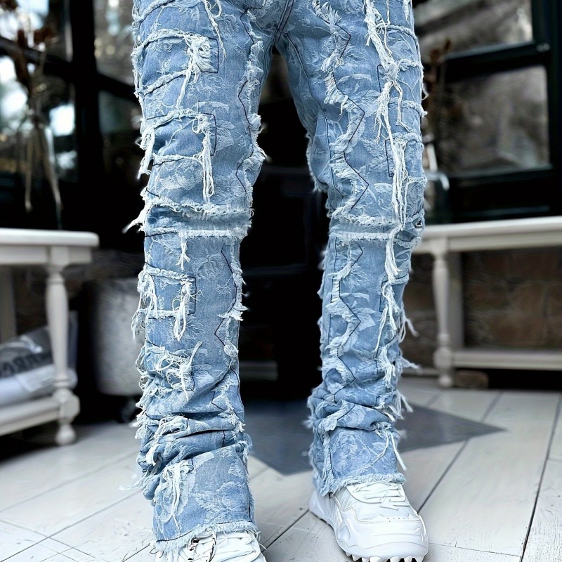 Men's Y2k Raw Trim Straight Leg Jeans, Casual Street Style Jeans