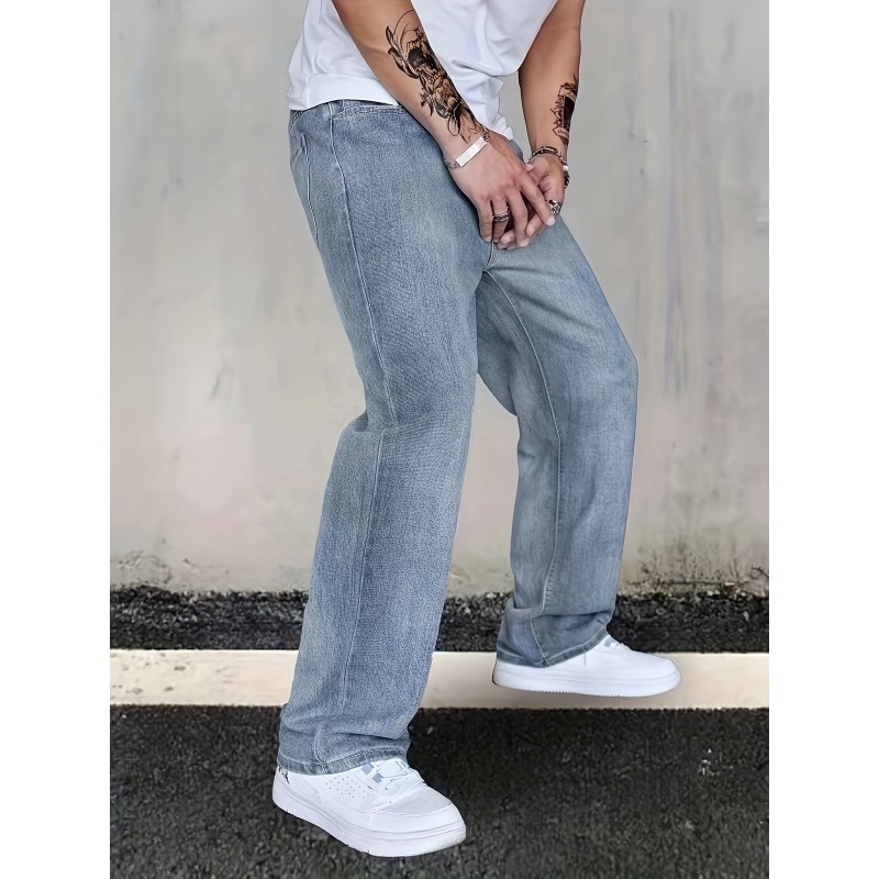 Classic Design Jeans, Men's Casual Street Style Distressed Denim Pants