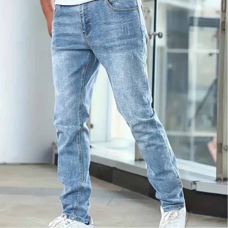 Men's Casual Medium Stretch Jeans, Classic Design Denim Pants