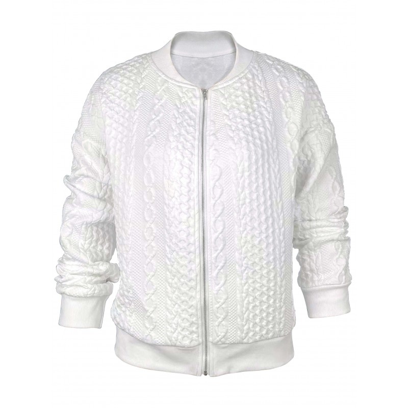 textured bomber jacket casual zip up long sleeve solid outerwear womens clothing details 0